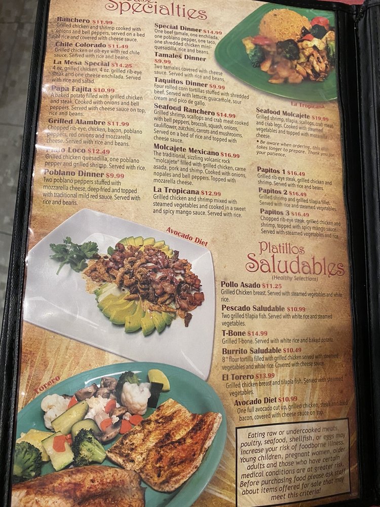 The salads are noteworthy, featuring delightful options such as the Chicken Fajita Salad and the unique Guacamole Salad, ensuring a refreshing start to your meal. For heartier selections, try the generous portions of enchiladas or their specialty dish, La Tropicana, known for its intricate flavors.